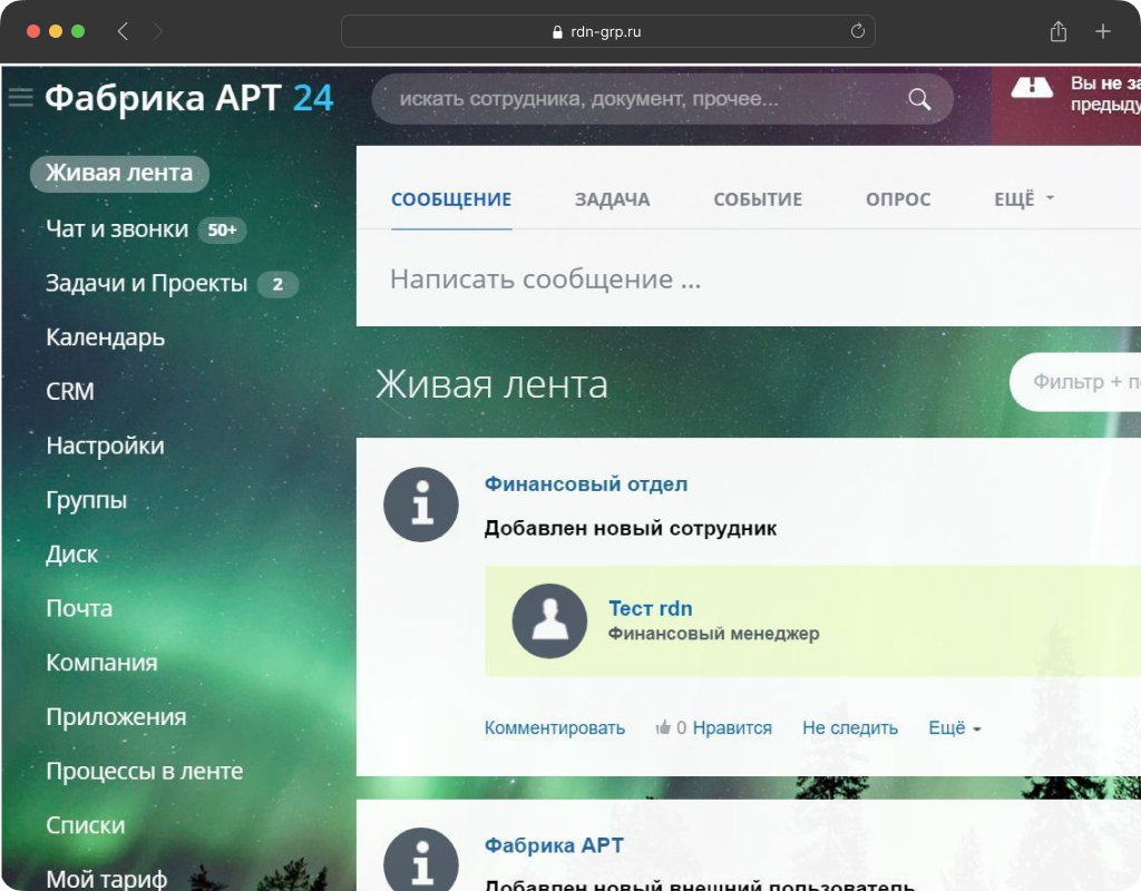 Внедрить корпоративный портал с функциями CRM-системы в компанию Фабрика АРТ, специализирующейся на оформлении крупных мероприятий и дизайне.